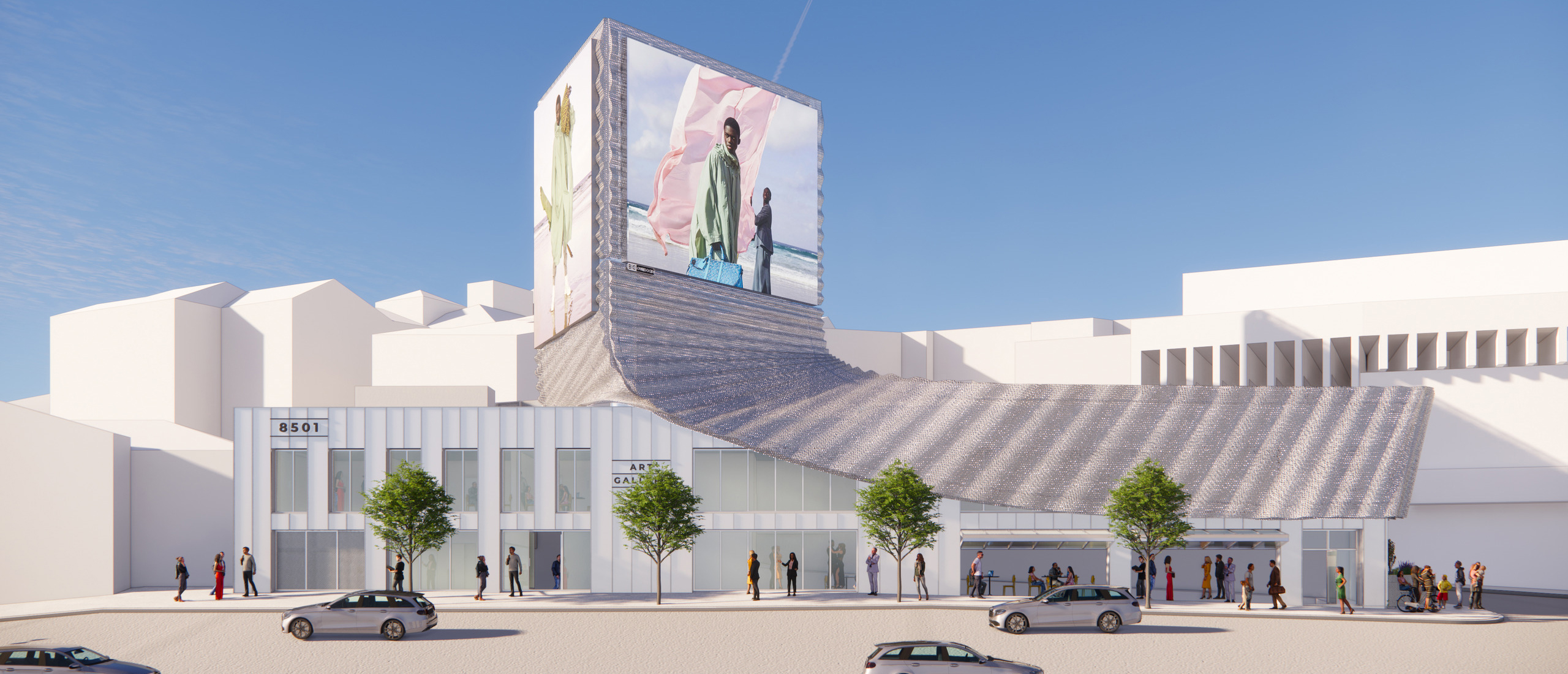 8501 Sunset, a sculptural billboard project, exemplifies our approach to reimagine the typology of media by dissolving the boundary between architecture and signage. At its core is a custom 3D-printed mesh, a lightweight, open lattice structure. Acting as a spatial mediator, the mesh seamlessly links the billboard display with the building façade, transforming signage into an architectural extension. More than a surface, it becomes a continuous experience where structure, media, and urban identity converge.